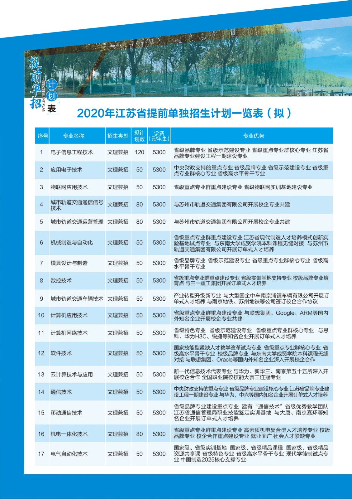 淮安信息职业技术学院2020年提前招生专业及计划出炉了,共有电子信息工程技术、应用电子技术、物联网应用技术、城市轨道交通通信信号技术等30个专业,关于各专业的招生计划数现在快来看看吧。