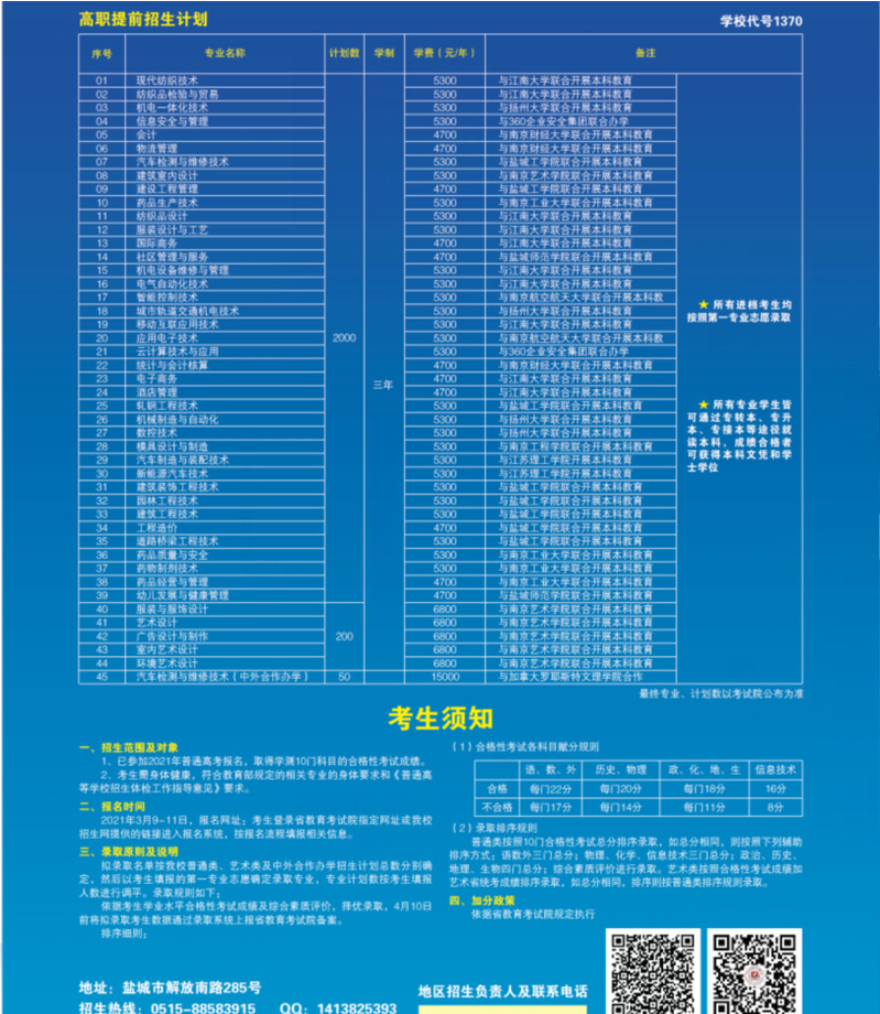 注:本文内容来源盐城工业职业技术学院招生办,由江苏招生考试网团队(微信公众号:jszkwx)综合整理,如有侵权,请及时联系管理员删除。
