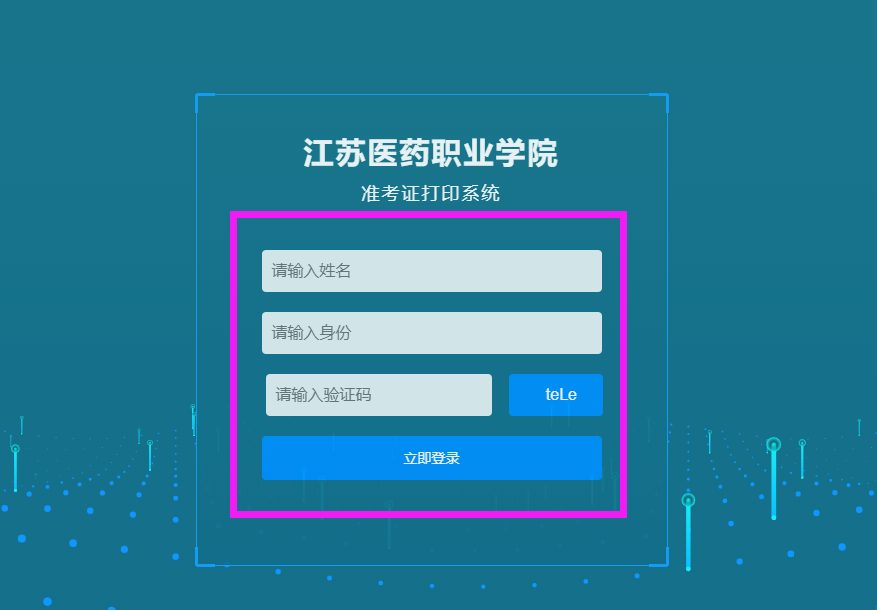 2、请填写考生本人姓名和身份证号码,输入验证码登录系统