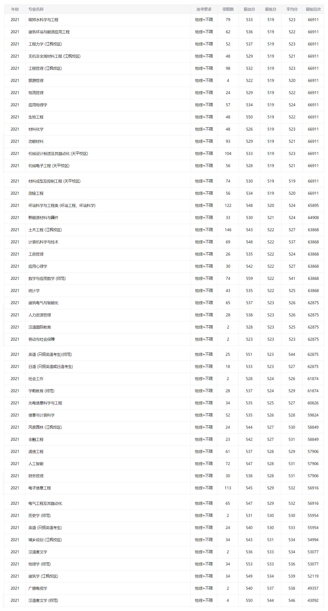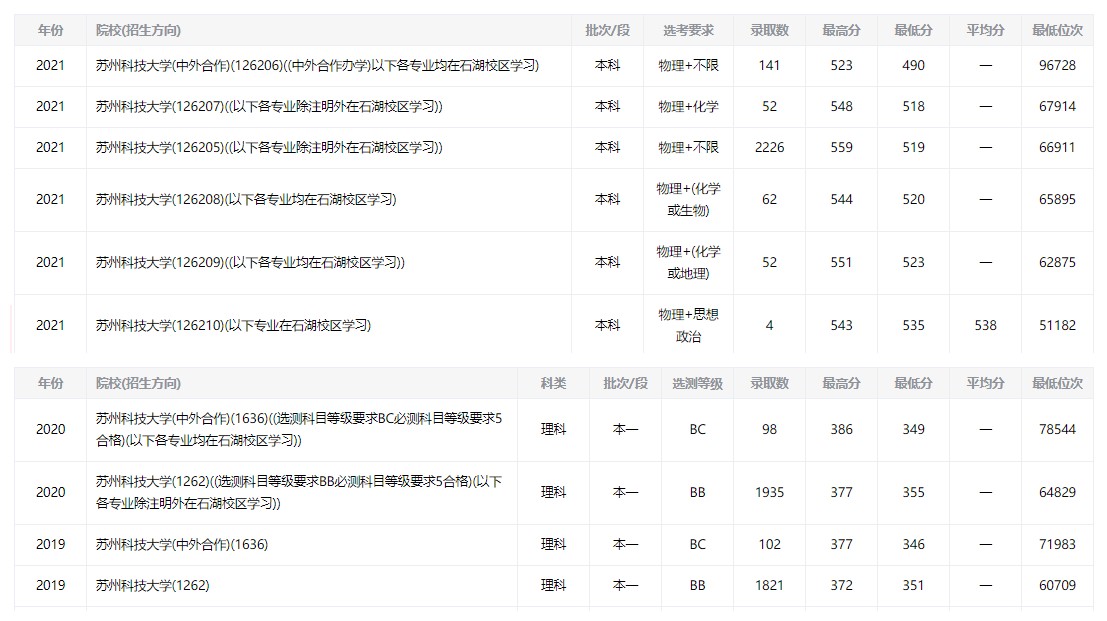 3 苏州科技大学专业录取情况● 1.物理(2021年) 2.历史(2021年)