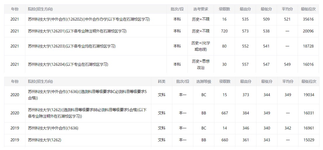 2 2022年苏州科技大学录取分数线及位次●