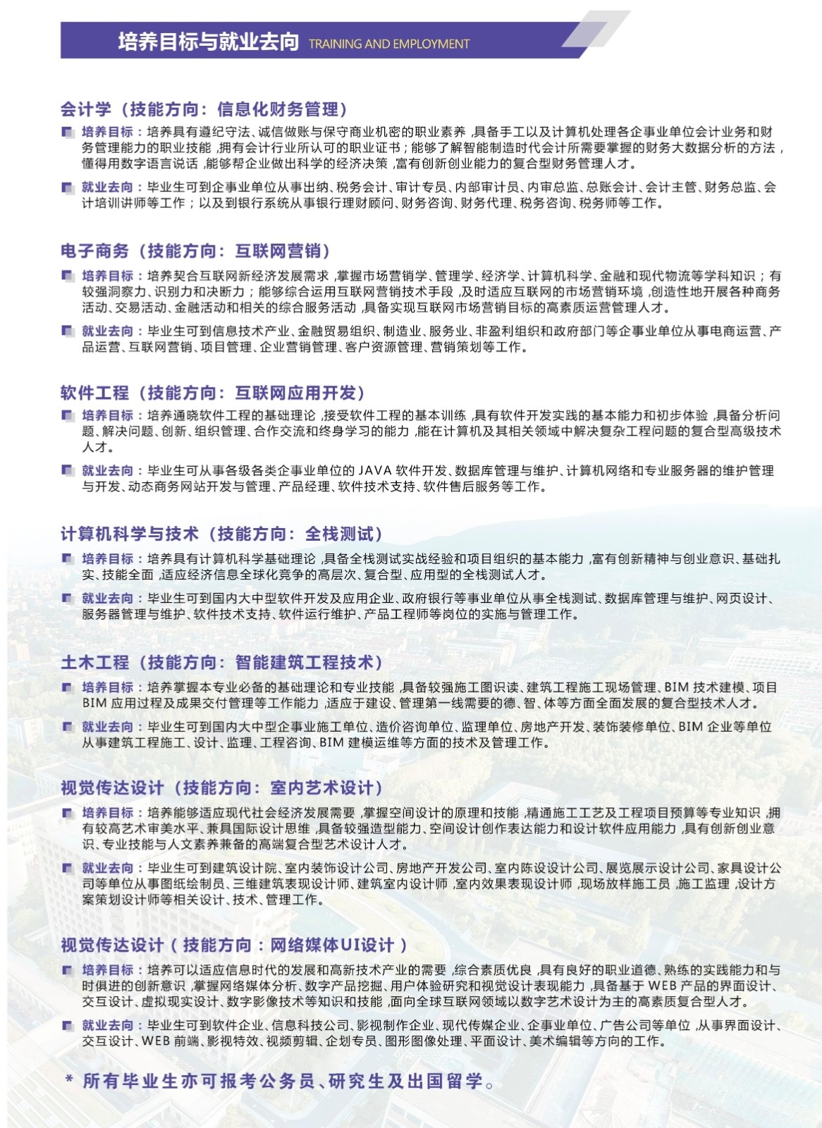 3,专攻就业、主打考研。学历+技能联合培养,就业待遇高,设立考研联盟主打考研!学校管理严格、技能证书考证多、各种竞赛资源多、在校可正常报考英语四六级。