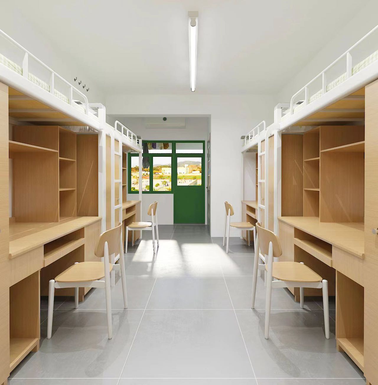 4人间、上床下桌、空调独卫热水器、独立阳台、直饮水机洗衣机。
