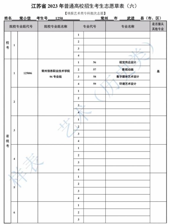 志愿样表
