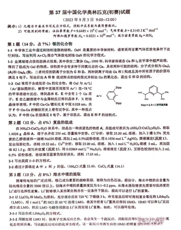 2023年第37届中国化学奥林匹克(初赛)已经结束了,江苏招生考试网小编整理了试题、成绩查询时间,跟着江苏招生考试网小编一起来看!